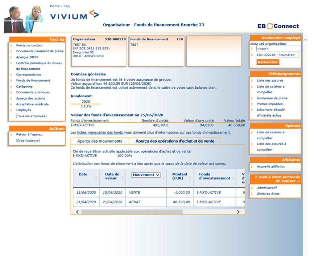 Parce que les assurances de groupe et tout ce qui tourne autour du sujet demandent parfois une explication suppl├®mentaire, Vivium a d├®velopp├® un site web sp├®cifique, EB-Connect. Vous y trouverez une multitude dÔÇÖinformations, notamment sur la fiscalit├® de lÔÇÖassurance de groupe, et vous d├®couvrirez comment nous collaborons de mani├¿re optimale.