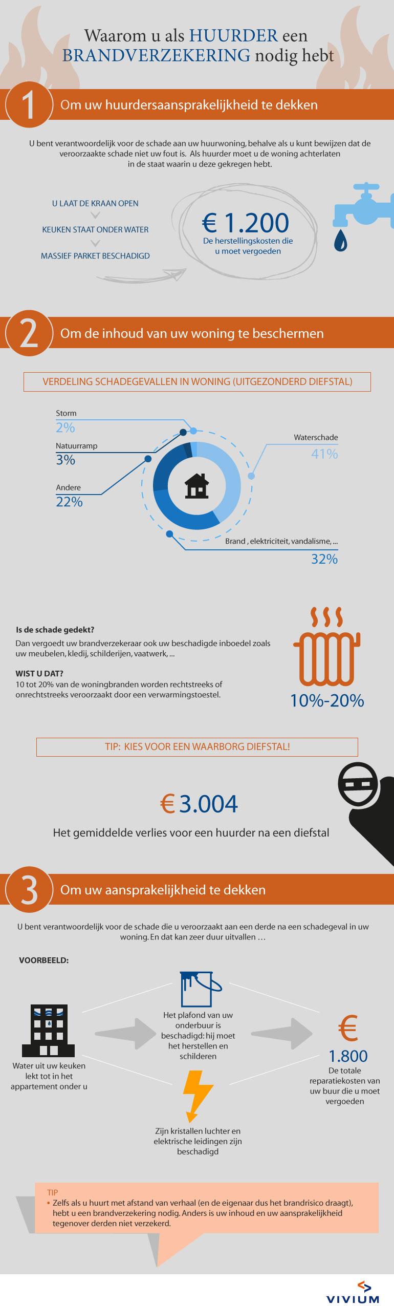 De brandverzekering VIVIUM Woning biedt solide waarborgen. Ze dekt uw huurdersaansprakelijkheid en beschermt uw inboedel tegen alle belangrijke risicos (brand, explosie ), en tegen uw aansprakelijkheid tegenover derden.